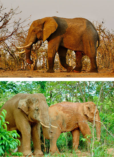 Depending on which source you go to, you may find African elephants considered one species or two: the African bush elephant (Loxodonta africana) and forest elephant (Loxodonta cyclotis). The WWF and IUCN only recognize one Loxodonta africana; Wikipedia recognizes two.