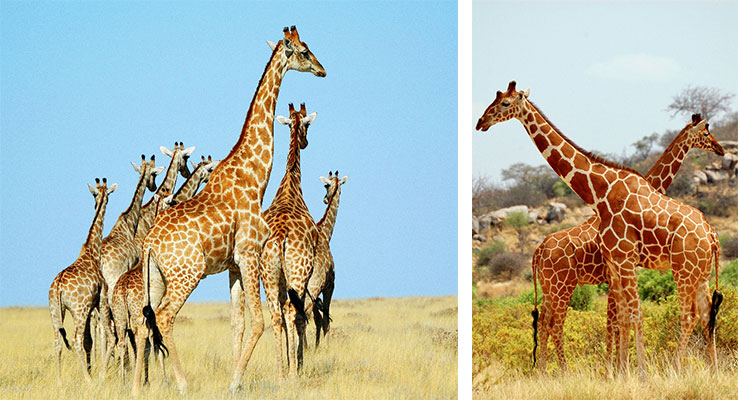 Depending on the taxonomy, the two are also considered distinct species, Giraffa angolensis and G. reticulata. Giraffe taxonomy is being debated, with the traditional classification recognizing a single species and other classifications recognizing up to eight distinct giraffe species.