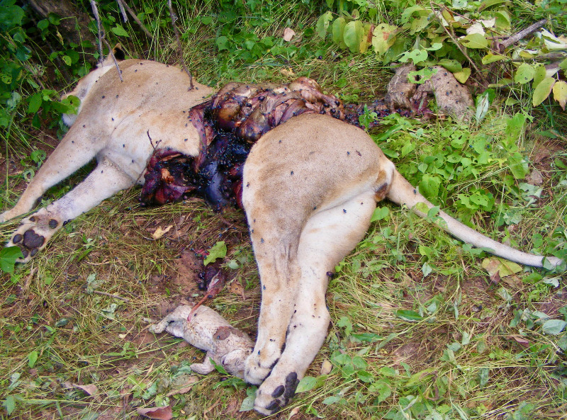 Banner image: The carcasses of three very young lion cubs speared in the bush. Author’s photo