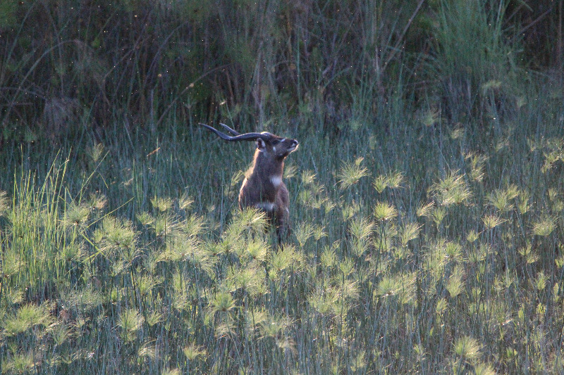 East African Sitatunga (Tragelaphus spekii spekii) live in dense papyrus marshes. Information about their numbers and habitat use in Uganda is sparse. During a three-year study, Camille Warbington recorded over 900 encounters along the Mayanja River with camera traps and from observation platforms. Published in Global Ecology and Conservation Vol. 24, Dec. 2020, Warbington’s doctoral dissertation provides wildlife managers with important data to determine sustainable sitatunga hunting quotas (Camille Warbington photo).