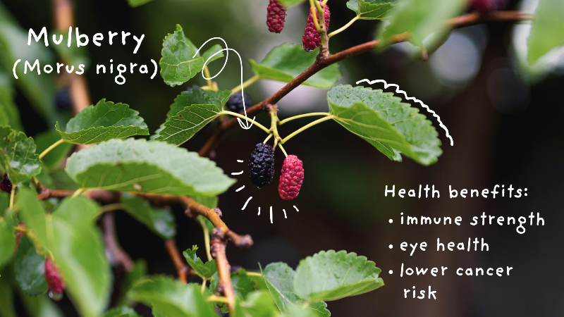 The mulberry (Morus nigra) can be found across the globe, with variants native to North America and China. This berry displays various colors depending on the variety, so be sure to know what you’re looking at before eating. Mulberries are great as jams or just fresh off the stem, and naturally contain vitamins that could help age-related health conditions.
